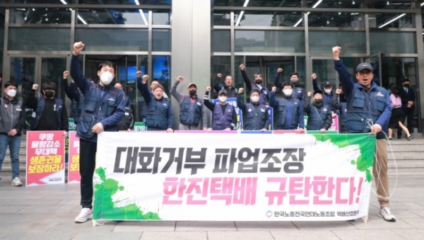 택배기사 생계 두고 차별적 보상하는 한진택배 규탄한다!
