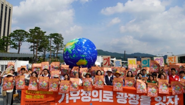 한국노총이 속한 927 기후정의행진 조직위원회가 지금 당장 기후정의를 위한 사회 변화가 필요하다며, 새로운 민주주의와 기후정의를 실현하기 위해 함께 외치고 행동하자고 촉구했다. 927 기후정의행진 조직위원회는 28일 오전 10시 광화문 광장 북측에서 ‘927 기후정의행진 선포 기자회견’을 열었다. 지난 2022년~2024년 기후정의행진에는 각각 한국노총을 비롯한 다양한 단체 및 3만 여명의 시민들이 참여했으…