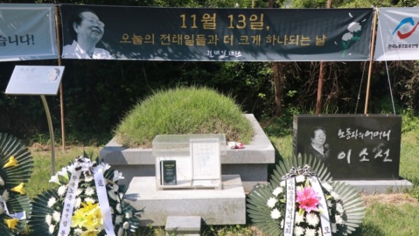 ‘근로기준법을 지켜라’라는 외침과 함께 산화한 아들 전태일 열사를 가슴에 담고 일생을 노동자의 어머니로 살며 투쟁한 ‘노동자의 어머니’ 이소선 여사의 14주기 추도식이 3일 오전 11시 마석모란공원 이소선 묘역 앞에서 열렸다. 추도식에 참석한 한국노총 강석윤 상임부위원장은 추도사에서 “어머니가 생전에 ‘노동자는 하나 되어야 이긴다, 1천만 노동자 중 10만 명만 서울광장에 모여서 하루만 집에 가지…