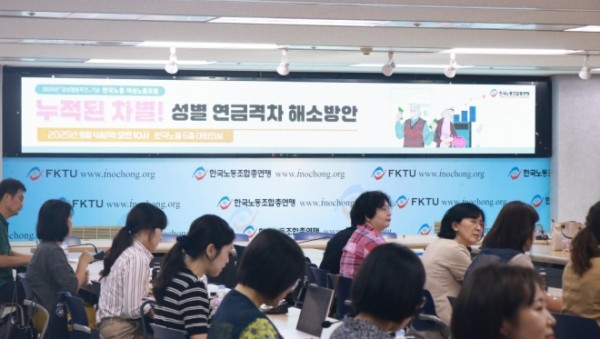 한국노총이 2025년 양성평등주간을 맞이하여 성별 연금격차 실태를 살펴보고, 해결방안을 모색하기 위해 4일 오전 10시 한국노총 6층 대회의실에서 ‘한국노총 여성노동포럼’을 개최했다. 이번 토론회는 노동시장에서 발생한 차별이 노동시장 퇴장 이후까지 지속돼 연금격차까지 유발하고 있다는 사실에 주목해 여성이 전 생애에 걸쳐 취약한 지위에서 벗어나지 못하는 문제를 다루었다. 토론회에 앞서 한국노총 정연실…