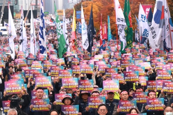 한국노총이 노동운동의 새로운 길을 열겠다고 선언했다. 한국노총은 전태일 열사 제55주기를 맞아 11월 8일(토) 오후 2시(사전대회 1시 30분)부터 서울 여의대로에서 조합원 3만여 명이 모인 가운데, ‘완전 새로운, 다시 쓰는 노동! 2025 전국노동자대회’를 개최했다. 이날 대회에서 한국노총은 복합위기 시대 극복을 위해 정년 연장 연내 입법과 사회적 대화, 노동기본권 확대를 강력히 요구했다. &…