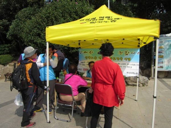 한국노총 부산지역본부와 한국노총 중앙법률원 부산지역노동교육상담소는 10월 11일 성지곡 수원지에서 제2차 길거리 무료법률상담을 실시했다. 평일 오전인데도 불구하고 등산객을 비롯한 회사 워크샵이나 소풍, 산책나온 사람들로 인해 인파가 북적거렸으며, 많은 사람들이 길거리상담에 관심을 가졌다. 부산역에…