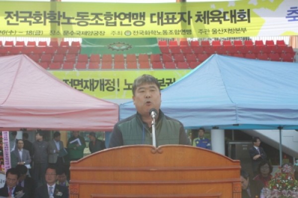 화학노동자의 화합과 단결의 상징인 제30회 전국대표자 체육대회가 10.16일-17일 울산 문수국제양궁장에서 개최됐다. 이번 대회는 울산본부(본부장 이동훈)주관으로 단위노조위원장, 본부장, 지부장 등 400여 동지들이 참가한 가운데 성황리에 개최됐다. 김동명 연맹위원장은 대회사를 통해 “우리 앞에 놓여있는 수많은 난관과 어려움을 해결해 나갈 조직적 역량을 집결시키…