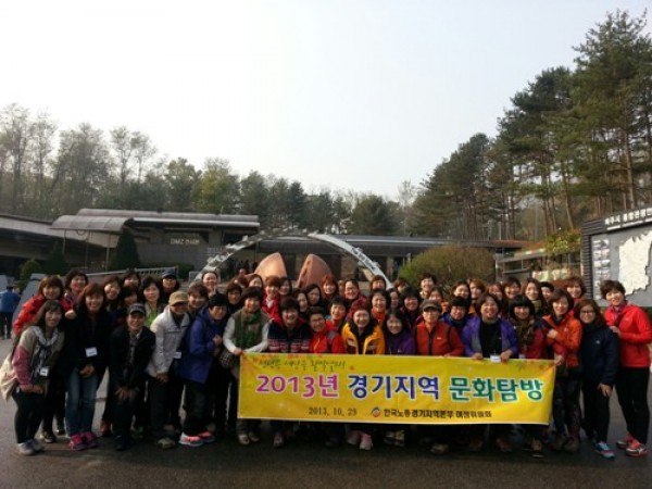 한국노총 경기지역본부 여성위원회(위원장 임이자)에서는 지난 2013년 10월 29일 경기지역 문화탐방을 실시하였다. 이날 문화탐방에 참석한 여성위원회 회원소속 여성조합원 55명은 제3땅굴 , 도라전망대, 파주 감악산 산머루농원(산머루쨈 만들기 체험 및 와인 시음 등) 방문하였다. 여성위원회 임위원장은 ‘성평등 세상을 활짝열자’ 는 캐치프레이를…