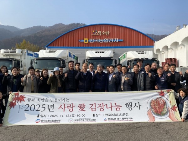 (재)좋은친구산업복지재단(이사장 김동명)은 한국노총 경기지역본부 중북부지역지부(의장 백호) 및 한국농협김치노조(위원장 이영숙)와 함께 ‘2025년 사랑의 김장나눔’ 행사를 2025년 11월 13일(목) 오전 10시, 한국농협김치 연천지사에서 개최했다. 이번 행사는 복지재단이 매년 추진하는 대표적인 나눔 사업으로, 경제적…