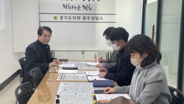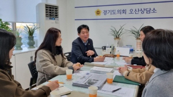 경기도의회 조용호 의원(더민주, 오산2)은 30일 도의회 오산상담소에서 곽보연 오산시 국공립어린이집 연합회장 등 관계자 5명과 보육정책 및 제도 개선을 위한 정담회를 실시했다.이번 정담회는 복지부의 유보통합(유아교육․보육 통합)에 따른 향후 관심과 영․유아 수 감소와 보육료 차등 지급 개선 방안 등 국공립어린이집의 효율적인 운영 방안을 논의하고자 마련됐다.230131 조용호 의원, 보육정책.제도 개선을 위한 정담회 개최곽보연…
