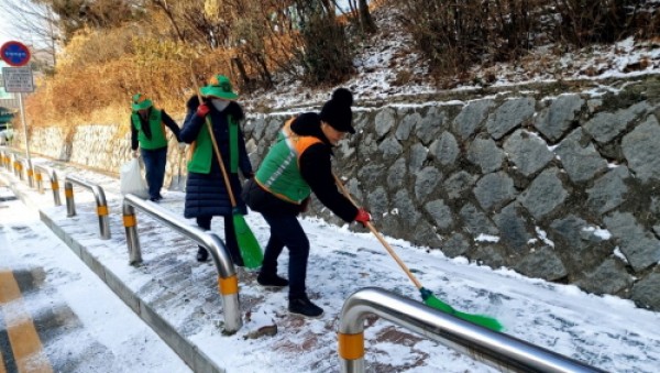 이천시 자율방재단, 등하굣길 골목 제설활동