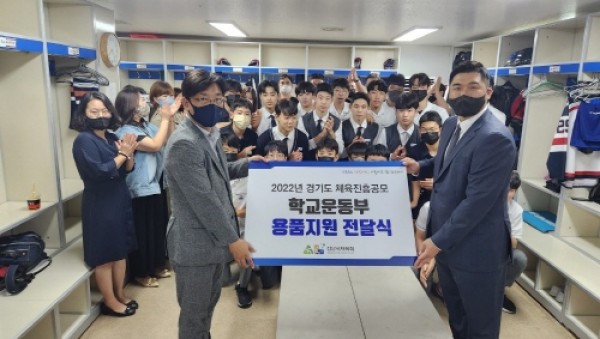 경기도의회 최만식 도의원과 함께 성남시 체육회가 확보한 학교운동부 용품 전달식 진행