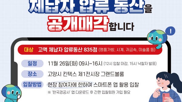 그래픽보도자료_+압류동산+공개매각(1) 경기도가 지방세 고액 체납자 가택수색을 통해 압류한 명품 시계, 가방 등 835여 점을 11월 26일 공개 매각한다.이번 현장 공개 매각은 고양시에 있는 일산 킨텍스에서 오전 9시부터 12시까지 3시간 동안 이뤄지며, 낙찰자에…