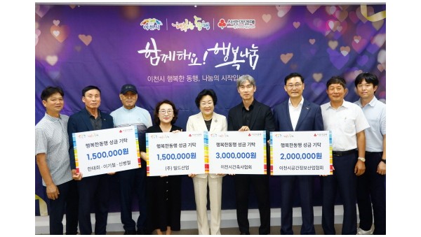 이천시의 어려운 이웃을 지원하는 ‘행복한 동행’ 사업에 지역 단체와 시민들의 따뜻한 기부가 이어지고 있다. 4. 이천시 행복한 동행 사업 지역사회 나눔 이어져 최근 이천시는 ▲이천시 공간정보산업협회 200만 원, ▲이천시 건축사협회 300만 원, ▲빌드산업 150만 원, ▲시민 한태희·이기철·신병철 일동 150만 원 등 총 800만 원 상당의 성금을 기탁받았다. 이번 기탁금은 …