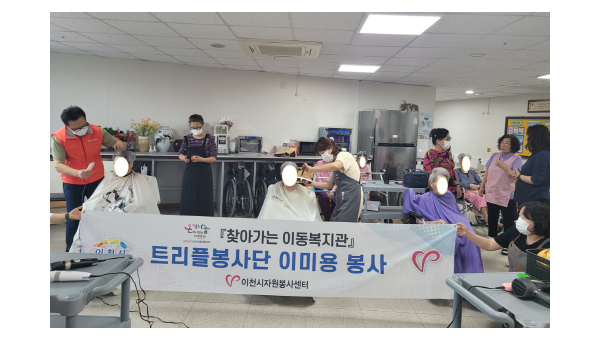 (재)이천시자원봉사센터(센터장 이미선)는 9월 25일 찾아가는 이동복지관을 운영하며 한나요양원을 방문하여 어르신들께 이·미용 서비스를 제공하며 따뜻한 나눔을 실천했다.16 찾아가는 이동복지관(이미용 봉사) 트리플 이·미용 봉사단은 전문 자격증을 소지한 분들로 ‘재능기부를 통해 지역사회에 온정을 나누고자’하는 시민들이 자발적으로 모여 구성된 재능봉사단으로 요양원 및 사회복지시설 등 거동이 불편한 계층을 대상으로 이·미용…