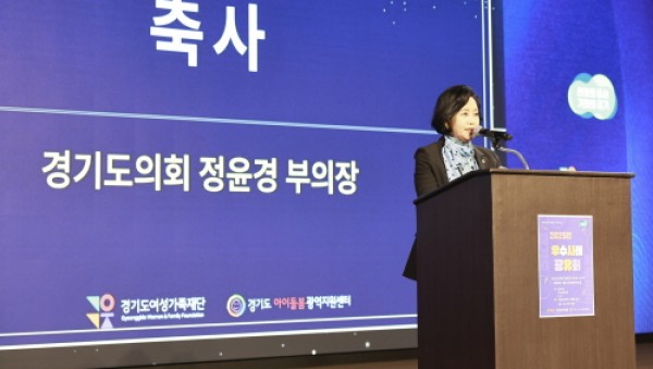 경기도의회 정윤경 부의장(더불어민주당, 군포1)은 9월 25일(목) 「2025년 경기도 아이돌봄 우수사례 공유회」 행사에 참석해 아이돌보미 관계자들의 노고를 격려하고, 경기도의회가 돌봄 정책을 적극 뒷받침하겠다고 밝혔다.250926 정윤경 부의장, “아이와 부모가 안심할 수 있는 돌봄 환경, 도의회가 함께 만들겠다” (1)정윤경 부의장은 “우리 사회의 가장 소중한 보물인 아이들을 위해 묵묵히 애써주신 아이돌보미 선생님…