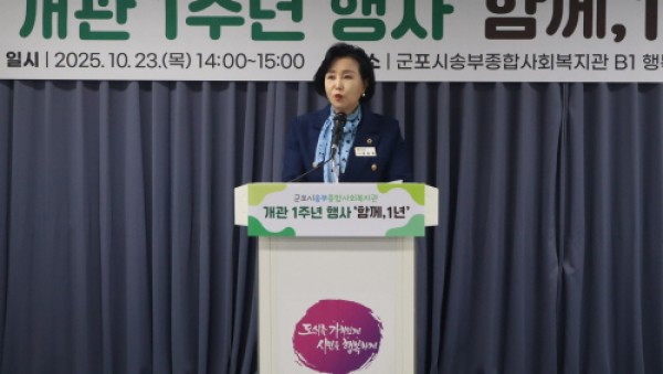 경기도의회 정윤경 부의장(더불어민주당, 군포1)은 23일 군포송부종합사회복지관 개관 1주년 행사에 참석했다.정윤경 부의장은 이날 축사에서 “송부종합사회복지관은 지난 1년 동안 단순히 복지 서비스를 제공하는 공간이 아니라, 사람과 사람이 마음을 잇는 사랑의 통로가 되어주었다”며 “삶의 무…