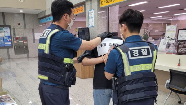 민원실 방화, 담당 공무원 폭행 등 일부 민원인의 폭력행위는 곳곳에서 발생하고 있어 더 이상 낯선 소식이 아니다.용인시 수지구가 민원인의 폭언, 폭행 등 비상 상황에 대비한 모의훈련을 진행, 경찰관이 가해 민원인을 제압하고 있는 훈련 모습 특별 교육과 실전과 같은 훈련으로 상황 대처 능력을 키워 직원과 다른 민원인을 안전하게 보호가 필요한 이유다. 용인시 수지구가 민원인의 폭언, 폭행 등 비상 상황…
