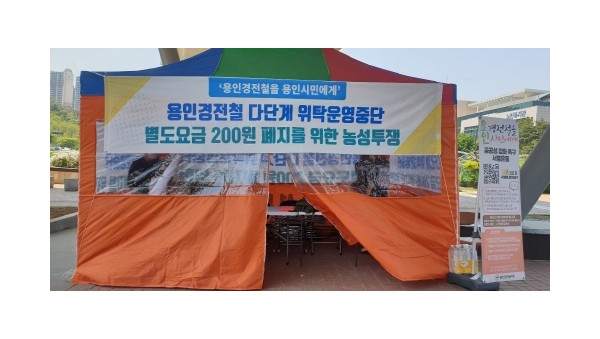 용인시의회의원 안혜민 예비후보, 용인경전철 공영화 요구 천막농성장 방문