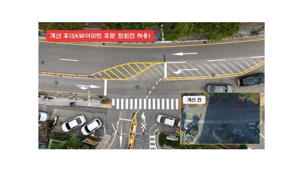 용인특례시(시장 이상일) 기흥구는 서천동 709번지 일원 서그내마을SK뷰아파트 후문 앞 도로의 중앙선 절선 공사를 완료해 좌회전을 허용했다고 26일 밝혔다. 후문 좌회전 진입 공사가 마무리된 기흥구 서천동 서그내마을SK뷰아파트 모습이 구간은 좌회전이 제한돼 주민들이 인근 교차로를 우회하거나 복잡한 경로를 이용해야 했다. 이로 인해 불법 좌회전이 빈번하게 발생하면서 교통 혼잡과 안전사고 위험이 높다는 지적도 나왔다.&n…