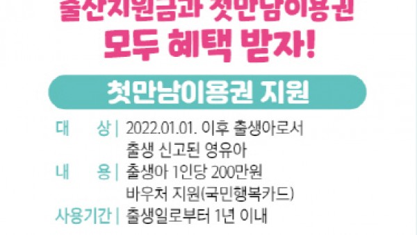 용인시가 출산 가정의 경제적 부담을 덜 수 있는 든든한 지원책을 내놓으며 눈길을 끌고 있다. 시는 다음 달 1일부터 모든 출산가정에서 시가 지급하는 ‘출산지원금’과 정부의 ‘첫만남이용권’ 혜택을 모두 받을 수 있게 됐다고 밝혔다. 첫만남이용권은 자녀 인원수에 상관없이 출산가정에 1인당 200만원씩 지급하는 정부 지원 바우처다. 신청 대상은 올해 1월 1일 이후 출생아…