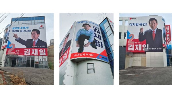 김재일 용인시장 예비후보, 선거사무소 홍보용 현수막 부착