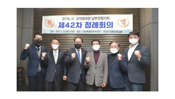 용인시의회 김기준 의장은 22일 오후 5시 안성시 축협 한우프라자에서 열린 경기도시·군의회의장 남부권협의회(회장 김기준) 제42차 정례회의에 참석했다. 왼쪽부터 장인수 오산시의회 의장, 홍선의 평택시의회 의장, 신원주 안성시의회 의장, 김기준 용인시의회 의장, 원유민 화성시의회 의장, 조석환 수원시의회 의장 이날 회의에는 김기준 협의회장을 비롯해…