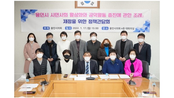 용인시의회 윤원균 의원(풍덕천2·상현1·상현2·상현3/더불어민주당)은 지난 17일 오후 3시 의회 4층 대회의실에서 ‘용인시 시민사회 활성화와 공익활동 증진에 관한 조례 제정을 위한 정책 간담회’를 열었다.시민사회 활성화와 공익활동 증진에 관한 조례 간담회 이날 간담회는 윤원균 의원의 진행으로 장정순, 김진석, 명지선, 전자영 의원과 안명균 경기도 공익활동지원센터 센터장, 이윤미 시민파워 대표, 이종…