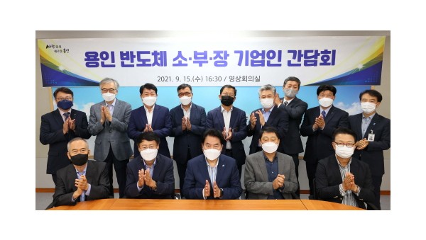 용인시는 지난 15일 시청 영상회의실에서 반도체 소부장(소재·부품·장비) 기업 지원 방안을 모색하기 위해 관내 7개 기업 대표들과 한국반도체디스플레이기술학회 관계자들과 간담회를 가졌다.소부장 기업 지원 방안 모색 간담회 관내 반도체 소부장 기업들의 애로사항을 듣고 소부장 특화단지 육성을 위한 시의 정책 방향 등을 논의하기 위해서다. 이날 간담회엔 백군기 용인시장, 김정웅 ㈜서플러스글로벌 대표 등 관…