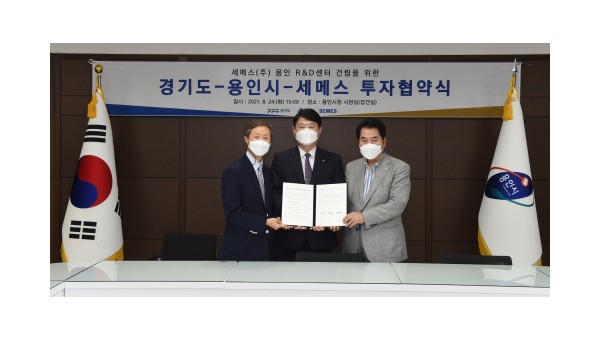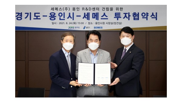 세계 반도체 장비 시장 점유율 7위를 기록하고 있는 반도체 장비 기업이 경기도 용인에 연구개발시설을 조성한다. 경기도와 용인시가 추진 중인 ‘용인반도체클러스터’와도 장비개발과 연구 부분에서 시너지가 예상되는 것은 물론 지역경제 활성화와 일자리 창출도 기대할 수 있게 됐다. 세메스㈜ R&D센터 용인 유치 관련 협약식(강창진 대표이사(좌), 이한규 경기도행정2부지사(중), 백군기 용인시장(우) 이한규 경…