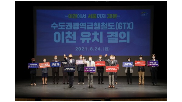 이천시(시장 엄태준)와 이천시의회(의장 정종철) 의원 및 경기도의원(의원 김인영, 의원 성수석, 의원 허원) 의원들이 함께 힘을 모아 GTX 이천 유치 및 GTX-A 접속부 설치를 위한 공동결의문을 8월 24일 발표했다. GTX 이천 유치 결의대회공동결의문을 통해 이천시가 수도권에 입지하고 있어 각종 중첩규제로 인해 수십 년간 불편을 감내하면서도, 대도시·신도시 위주의 교통정책으로 인해 수도권광역급행철도망 노…