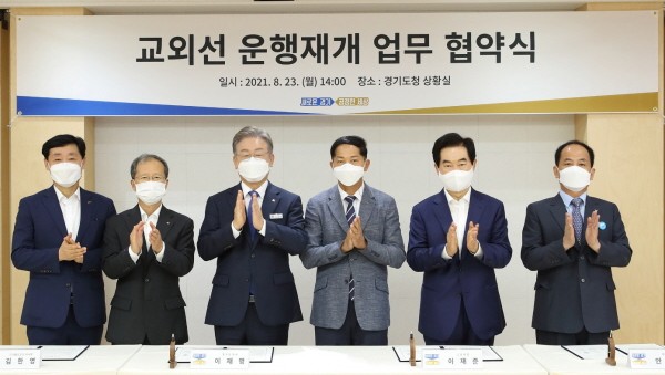 경기도가 경기북부 철도 교통편의 증진과 수도권 균형발전의 초석이 될 ‘교외선’의 2024년 개통을 위해 고양시, 의정부시, 양주시, 국가철도공단, 한국철도공사와 손을 잡고 본격적인 사업 추진에 돌입한다. 이재명 지사는 23일 경기도청에서 이재준 고양시장,안병용 의정부시장, 김종석 양주부시장, 김한영 국가철도공단이사장, 정왕국 한국철도공사 사장직무대행과 이 같은 내용의 ‘교외선 운행재개 업무협약’을 체결했다.…
