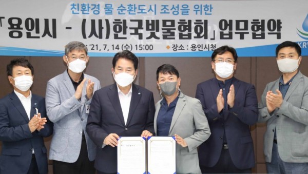 용인시는 14일 시장 접견실에서 ‘친환경 물 순환도시 조성’을 위해 (사)한국빗물협회와 업무 협약을 체결했다. 효율적으로 빗물을 이용·관리할 수 있는 방안을 모색하고 이를 위한 제도 정비나 정책 수립 과정에서 전문가들과 협력하기 위해서다. 이날 협약식에는 백군기 용인시장과 최경영 (사)한국빗물협회장 등 관계자 8명이 참석했다. 협약에 따라 시와 한국빗물협회는 빗물 이용…