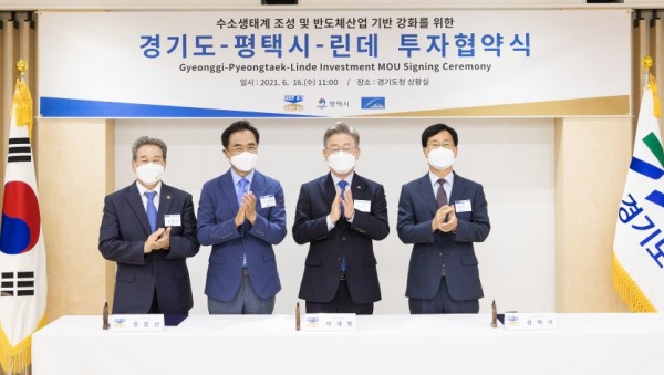 세계적인 산업용 가스업체 ‘린데(Linde)’가 약 15억 달러(한화 약 1조 7천억 원)를 경기도에 투자해 수소충전소와 산업용 가스시설을 신·증설한다. 올해 경기도가 유치한 외국기업 투자 가운데 최대 규모다. 투자협약식1이재명 경기도지사와 정장선 평택시장, 성백석 린데코리아 회장은 16일 경기도청에서 수소충전소 및 산업용 가스시설 설립을 위해 상호협력 하는 내용의 투자협약서에 공동으로 서명했다. 산지브 람바(Sanjiv La…