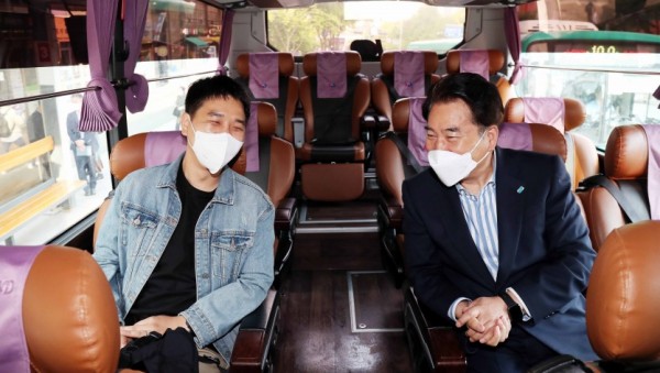 백군기 용인시장, 프리미엄버스 정류장 찾아 시민들 배웅