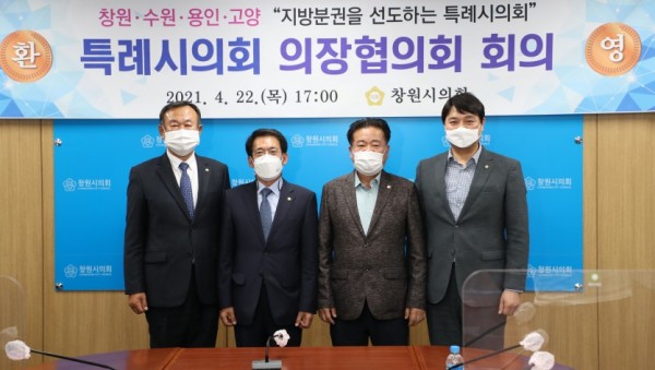 용인시의회 김기준 의장은 22일 오후 5시 창원시의회 소회의실에서 열린 제4차 전국 특례시의회 의장협의회 회의에 참석했다. 이날 회의에는 김기준 의장을 비롯해 조석환 수원시의회 의장, 이길용 고양시의회 의장, 이치우 창원시의회 의장 등이 참석했으며, 전국특례시의회와 행정안전부장관 면담, 각종 법령 개정 시 특례시의회 공동대응방안 등에 대해 논의했다. 김기준…