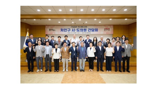 용인특례시(시장 이상일) 처인구는 지난 21일 시·도의원 합동간담회를 열고 2025년 하반기 구의 주요 업무 등을 공유했다고 22일 밝혔다. 21일 처인구청에서 시도의원 간담회가 열렸다 이날 간담회엔 처인구를 지역구로 하는 시·도의원과 구 관계자 등 30여 명이 참석해…