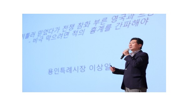 “비극의 역사가 남긴 교훈을 잊지 말아야 합니다.”이상일 용인시장이 27일 열린 ‘특례시민 안보공감 강연회’에서 강연을 하고 있다 이상일 용인시장이 27일 열린 ‘특례시민 안보공감 강연회’에서 참석자들과 기념촬영을 하고 있다. 이상일 용인시장이 정…