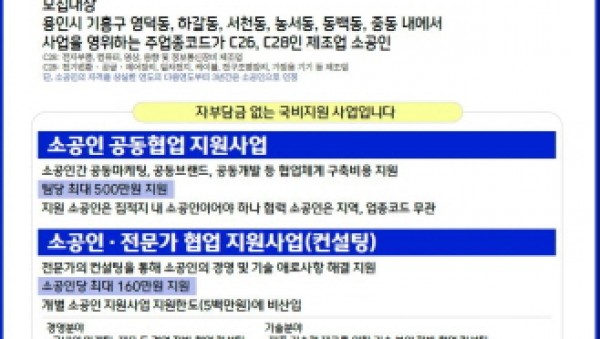 용인시산업진흥원(원장 김윤석) 소공인특화지원센터(이하 센터)가 2022년 6월 21일(화)부터 7월 8일(금) 17시까지 지원사업에 참여할 ICT 소공인을 모집한다. 소공인특화지원센터 2차 지원사업 이번 지원사업은 ‘소공인 공동협업 지원사업(3개 …