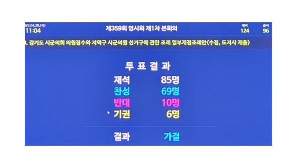 28일 열린 제359회 임시회 제1차 본회의에서 경기도 시군의회 의원정수와 지역구 시군의원 선거구에 관한 조례 일부개정조례안(수정, 도지사 제출)이 통과됐다. 본회의 표결 결과전날 열린 경기도의회 안전행정위원회에서는 심도 있는 심의를 통해 성남시 사선거구에…