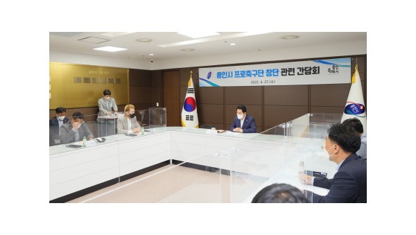 용인시가 프로축구단 창단을 위한 연구 용역을 추진, 본격적인 창단 준비에 돌입했다. 백군기 용인시장이 대한축구협회, 용인시축구센터 등 체육계 관계자들과 만나 프로축구단 창단 방식과 시기 등에 대해 심도 있게 이야기를 나눈뒤 기념촬영을 하고 있다 프로축구단 창…