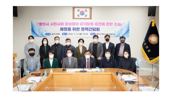 용인시의회 윤원균 의원(풍덕천2·상현1·상현2·상현3동/더불어민주당)은 지난 14일 오후 3시 의회 4층 대회의실에서 ‘용인시 시민사회 활성화와 공익활동 증진에 관한 조례 제정을 위한 정책 간담회’를 열었다. 이번 간담회는 지난 1월에 개최한 간담회에 이어 각…