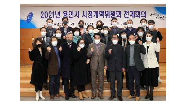 용인시는 21일 시청 비전홀에서 한 해 활동을 돌아보고 내년 시정 계획을 공유하기 위해‘시정개혁위원회’ 전체 회의를 개최했다고 밝혔다.용인시 시정개혁위원회 위원들이 한 해를 마무리하며 기념 사진을 찍고 있다. 시정개혁위원회는 불합리한 행정제도를 개선하고 시정 …
