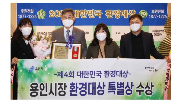 용인시는 15일 서울시 서초구 매헌윤봉길의사기념관 대강당에서 열린 ‘제4회 대한민국 환경대상’ 시상식에서 백군기 시장이 ‘시정활동 우수’ 부문 특별상을 수상했다고 밝혔다. 제4회 대한민국 환경대상' 시정활동 우수 특별상 수상 대한민국 환경대상은 대한민…