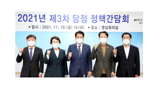 백군기 용인시장은 19일 시청 영상회의실에서 2021년도 제3차 당정 정책간담회를 열어 시 발전을 위한 주요 현안을 논의하고 지역 국회의원들에게 상호협력을 당부했다. 백군기 용인시장은 19일 시청 영상회의실에서 제3차 당정 정책 간담회를 갖고 주요 현안을 논의했다. &…