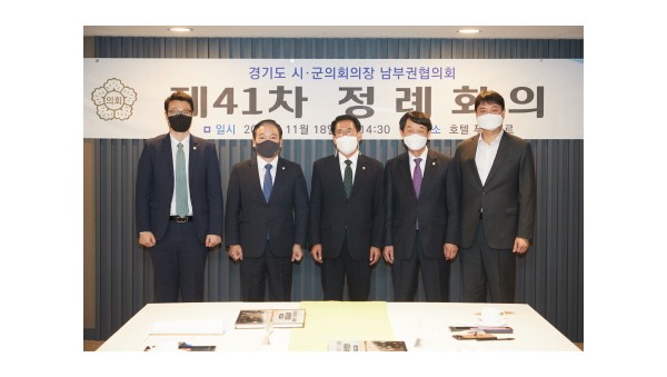용인시의회 김기준 의장은 18일 오후 2시 30분 경기도 화성시 호텔 푸르미르 2층에서 열린 경기도시·군의회의장 남부권협의회(회장 김기준) 제41차 정례회의에 참석했다.용인시의회 김기준 의장, 경기도시·군의회의장 남부권협의회 회의 등 참석 이날 회의에는 김기준 협의회…