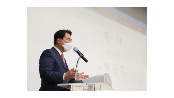 백군기 용인시장은 22일 시청 컨벤션홀에서 열린 ‘2021 리빙랩(Living Lab) 프로젝트’ 성과보고회에 참석해 프로젝트에 참여한 문제 해결단을 격려했다.백군기 용인시장은 22일 시청 컨벤션홀에서 열린 ‘2021 리빙랩(Living Lab) 프로젝트’ 성과보고회에 참석해 프로젝트에…