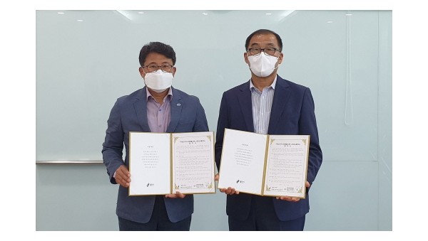용인시 수지구는 31일 한국공인중개사협회 수지구지회와 업무 협약을 맺고 부동산 시장 교란 행위를 막기 위해 협력키로 했다고 밝혔다. _김정원 수지구청장(왼쪽)과 공인호 한국공인중개사협회 수지구지회장이 31일 업무협약을 체결한 뒤 기념촬영을 하고 있다.  …