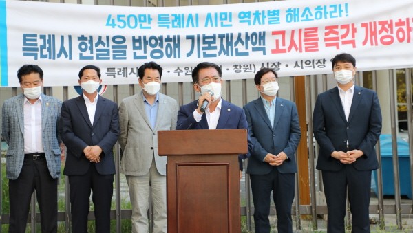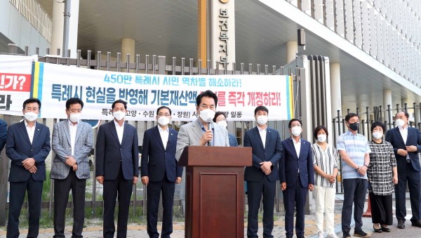 특례시 4개 시장, 기본재산액 고시 개정 촉구 규탄 집회
