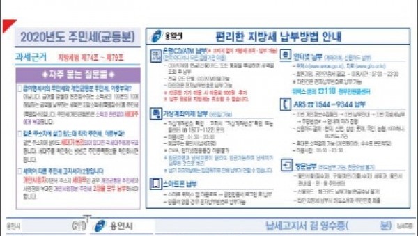 용인시는 27일 지방세 고지서에 시각장애인이나 저시력자가 음성으로 세금 내용을 확인할 수 있는 바코드를 도입한다고 밝혔다. 지방세 고지서에 음성변환용 바코드 도입_사진(1) 바코드 적용 전 예시지방세 고지서에 음성변환용 바코드 도입_사진(2) 바코드 적용 후 예시 …