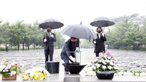 장현국 경기도의회 의장(더민주, 수원7) 등 의장단이 20일 경남 김해시 봉하마을을 방문해 고(故) 노무현 전 대통령의 묘역을 참배했다. 210520 장현국 의장 등 의장단, 고 노무현 전 대통령 묘역 참배 (1)장현국 의장과 문경희(더민주, 남양주2)·진용복(더민주, 용인3…