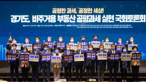 이재명 경기도지사가 “조세는 국민들이 국가구성원으로서 부담하는 가장 핵심적인 것으로, 실질적 형평성이 보장돼야 한다”며 비주거용 부동산을 비롯한 조세제도 전반에 대한 전면적 개편 필요성을 역설했다.국회토론회1이재명 지사는 12일 서울 여의도 글래드 호텔에서 경기도 주관, 국회의원 32명…