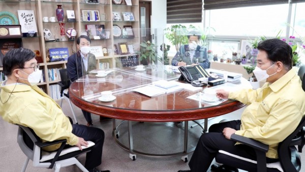용인시의회(의장 김기준)를 비롯한 4개 특례시의회 의장들로 구성된 전국 특례시의회 의장협의회는 13일 수원 컨벤션센터에서 김순은 자치분권위원장을 만나 특례시 및 특례시의회 지위에 걸맞은 권한 확보를 촉구했다. 20210513 전국 특례시의회 의장협의회, 김순은 자치분권위원장 면담(1)이…