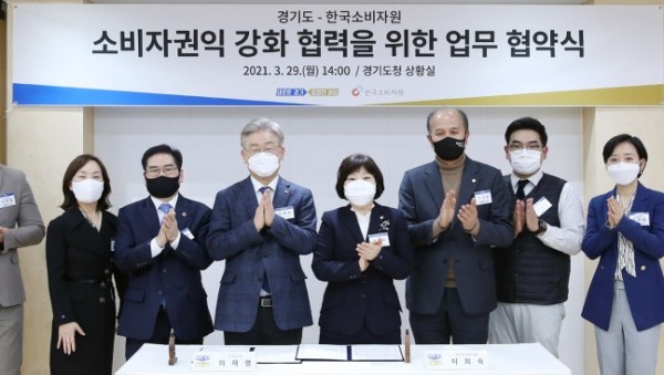 경기대학교 기숙사비 환불 지연 분쟁을 함께 해결한 경기도와 한국소비자원이 신속하고 공정한 소비자 분쟁 해결을 위해 소비자분쟁 전문자문단을 운영하는 등 공공협력 모델을 구축하기로 했다.협약식1이재명 경기도지사는 29일 경기도청 상황실에서 이희숙 한국소비자원 원장과 ‘소비자권익 강화 협력을…
